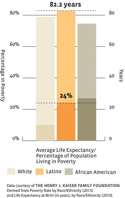 Despite nearly a quarter of U.S. Latinos living in poverty, the group as a whole has a higher average life expectancies than white Americans, who have a much lower poverty rate.